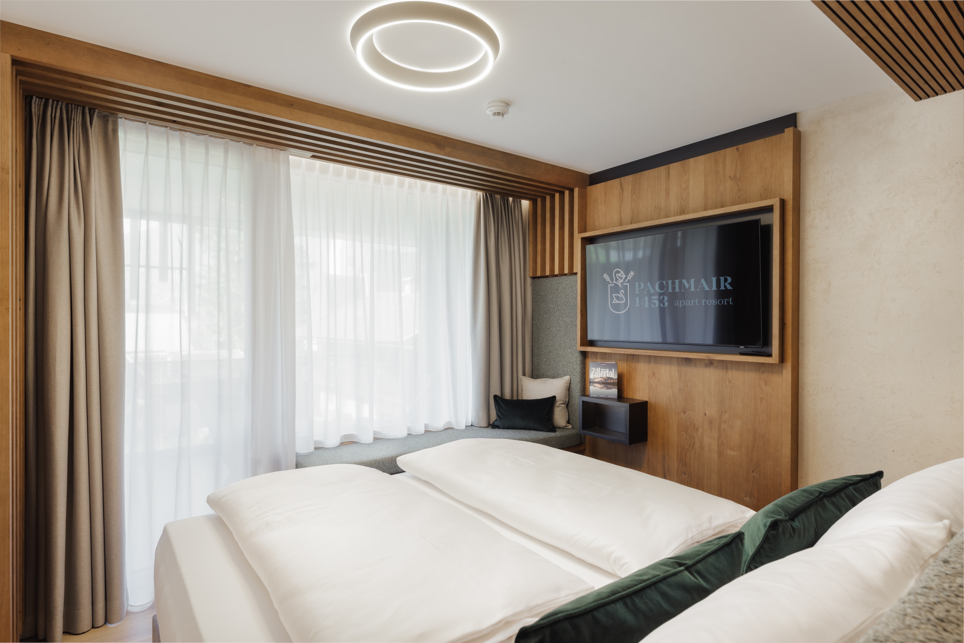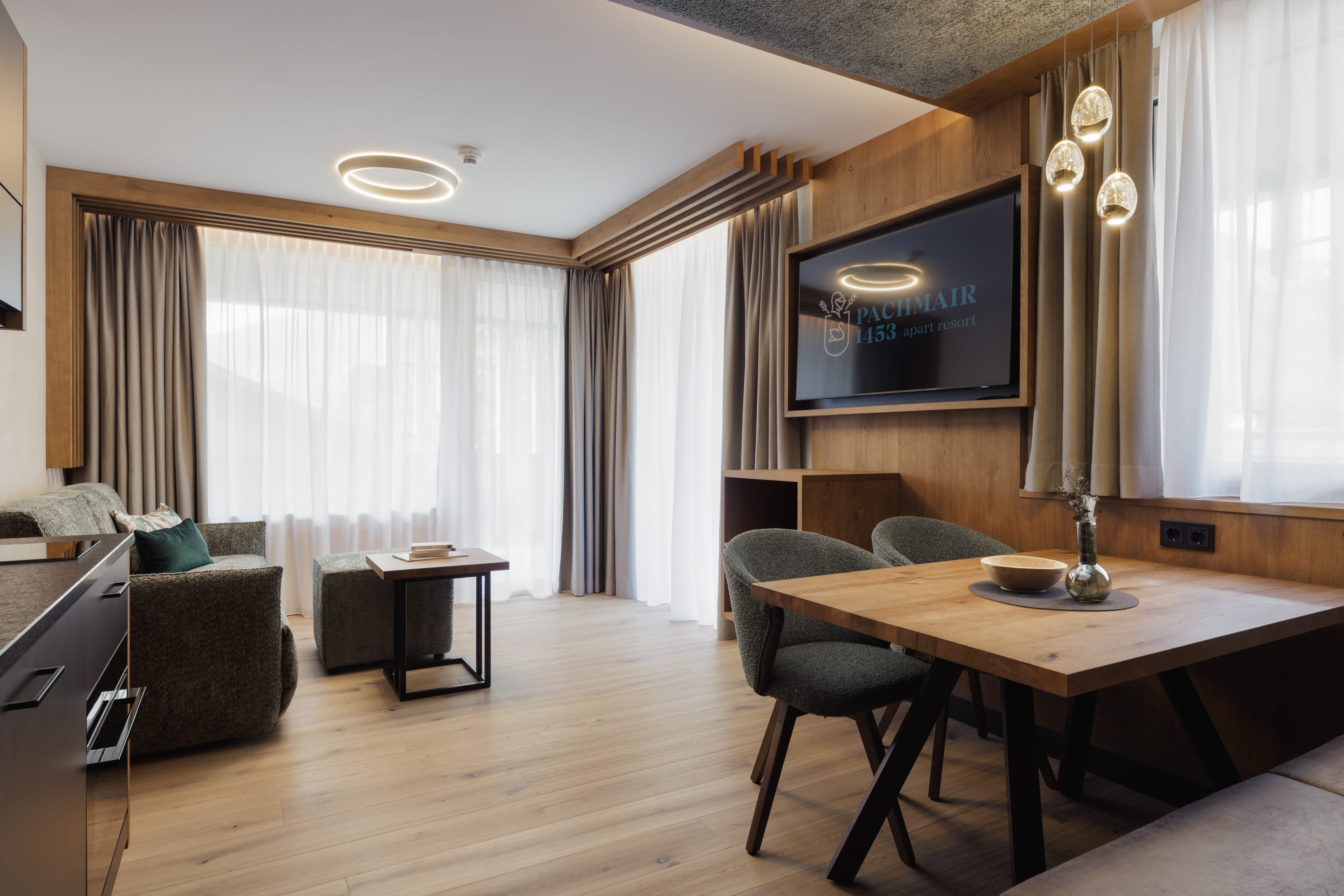 ZUSAMMEN individuell. Auf 43m² bietet dieses Appartement Platz und Luxus für bis zu vier Gäste, mit einem getrennten Schlafzimmer und hochwertigem Kingsize-Boxspringbett sowie einer Ausziehcouch in Queensize-Größe im Wohn-Essbereich. Ein Tiefgaragenstellplatz ist ebenfalls inklusive.